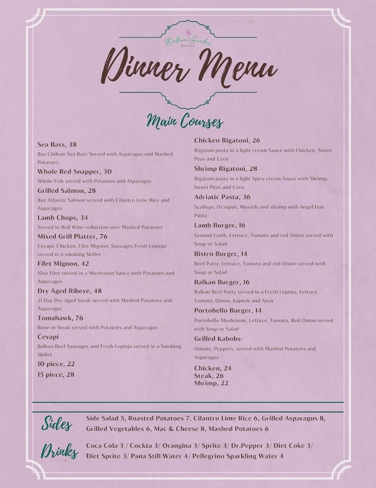 1 Steak Kabob, 1 Chicken Kabob, 10 Cevapi, 1 Rack of Lamb Rimbs, 2 Lepina Bread accompanied by a side of Sour Cream, Ajvar, & Onions.